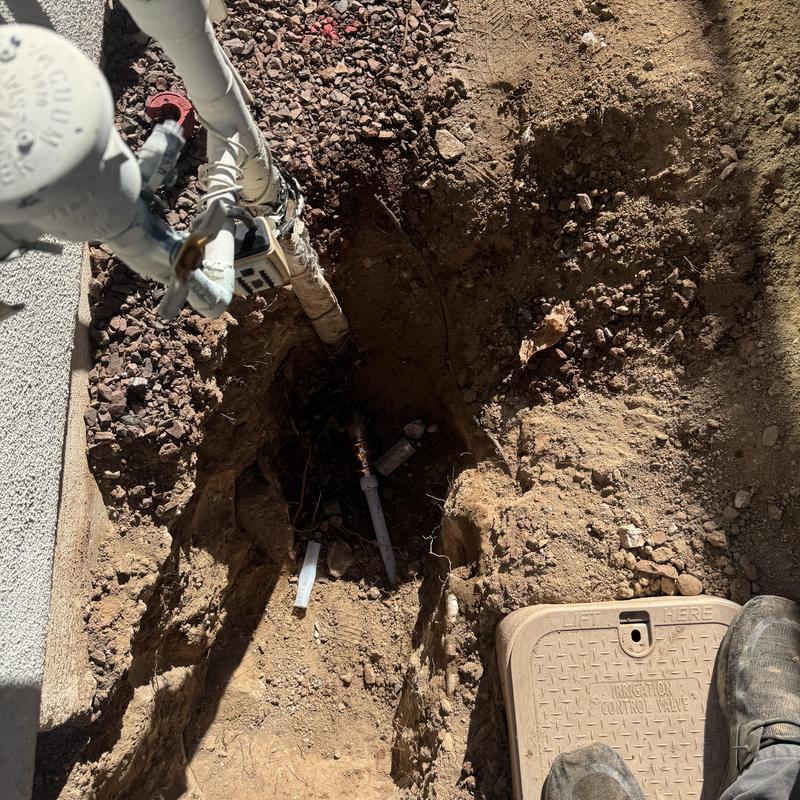 PHAY Plumbing Services LLC excavated a leaking water main line in Buckeye, Arizona, repairing a faulty copper to PVC connection to restore reliable water flow and prevent future leaks for homeowners.