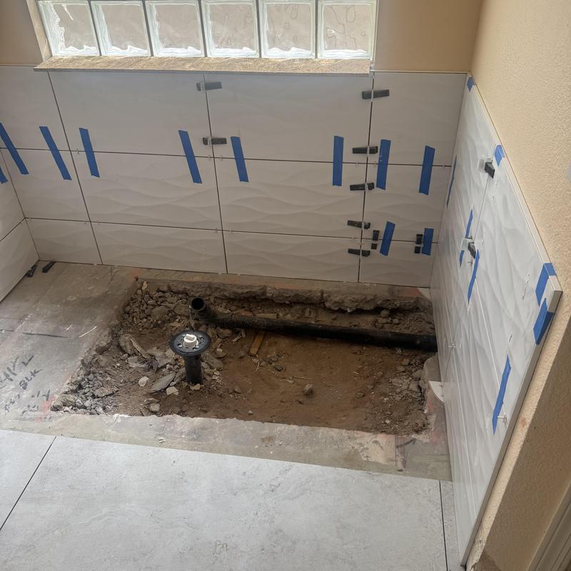 Phay Plumbing Services LLC installed new sewer and water lines for a zero-entry shower and freestanding tub in Goodyear, AZ, enhancing bathroom functionality with durable plumbing upgrades for homeowner comfort and efficiency.