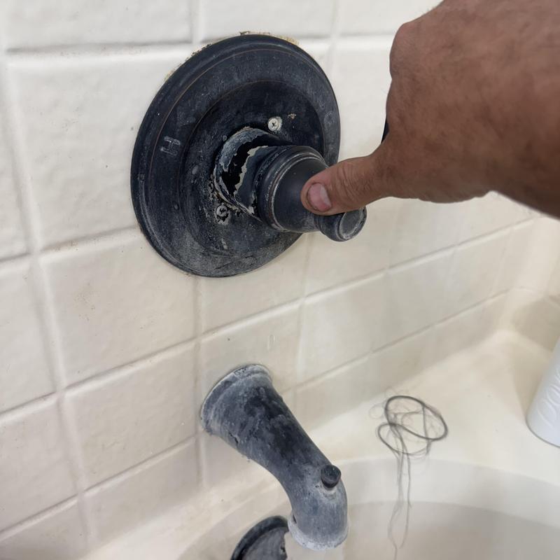 PHAY Plumbing Services LLC inspected a faulty tub valve in Goodyear, Arizona. The valve caused excess water pressure and sent water to both the shower and tub at once. The plumber identified the problem to improve flow control and ensure proper valve function.