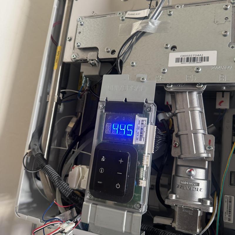 Phay Plumbing Services LLC inspected a tankless water heater in Goodyear, Arizona, that displayed an E445 error code. The inspection confirmed the recirculation pump had failed. The team will replace the faulty pump to restore proper water heating performance in the Estrella Mountain community.