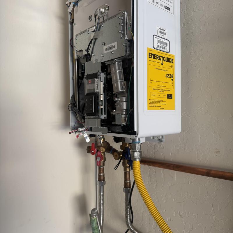 A plumbing technician inspected an incorrectly installed tankless water heater in Goodyear, Arizona. The visit focused on identifying installation issues to ensure the unit operates safely and efficiently.