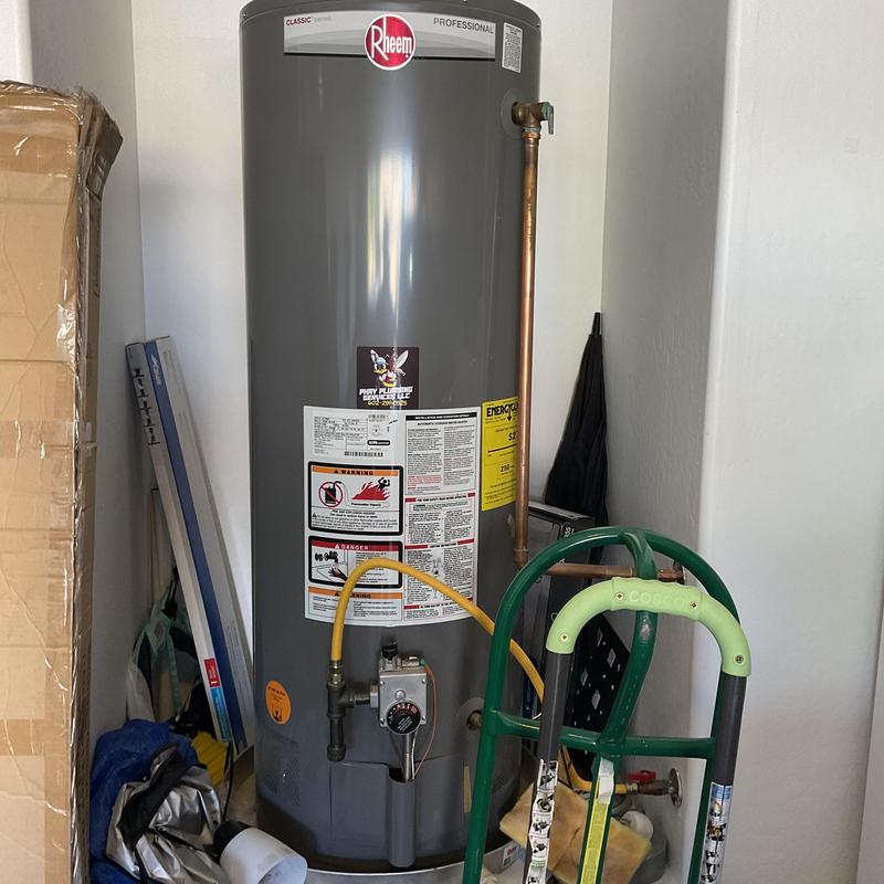 PHAY PLUMBING SERVICES LLC provided an estimate to install a new 50-gallon gas water heater in Litchfield Park, Arizona. The project involved reviewing site requirements and preparing for a full replacement of the existing unit to improve hot water delivery in the home.