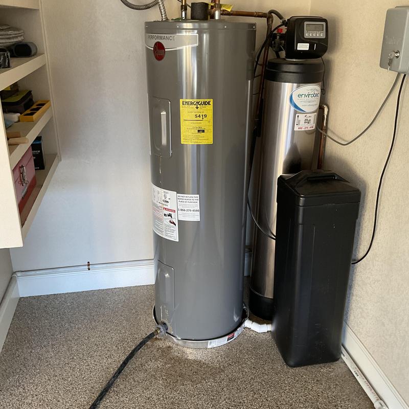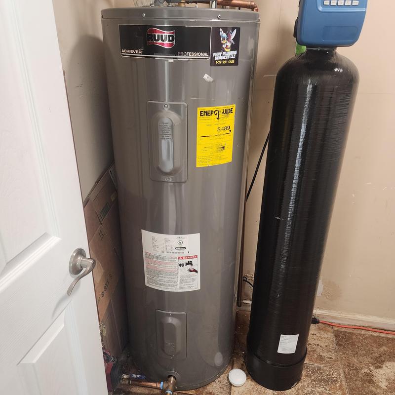 PHAY Plumbing Services LLC installed a 50-gallon electric Ruud water heater and connected it to the recirculation line in Scottsdale, Arizona. The work included setting up all necessary plumbing connections to support efficient hot water flow.