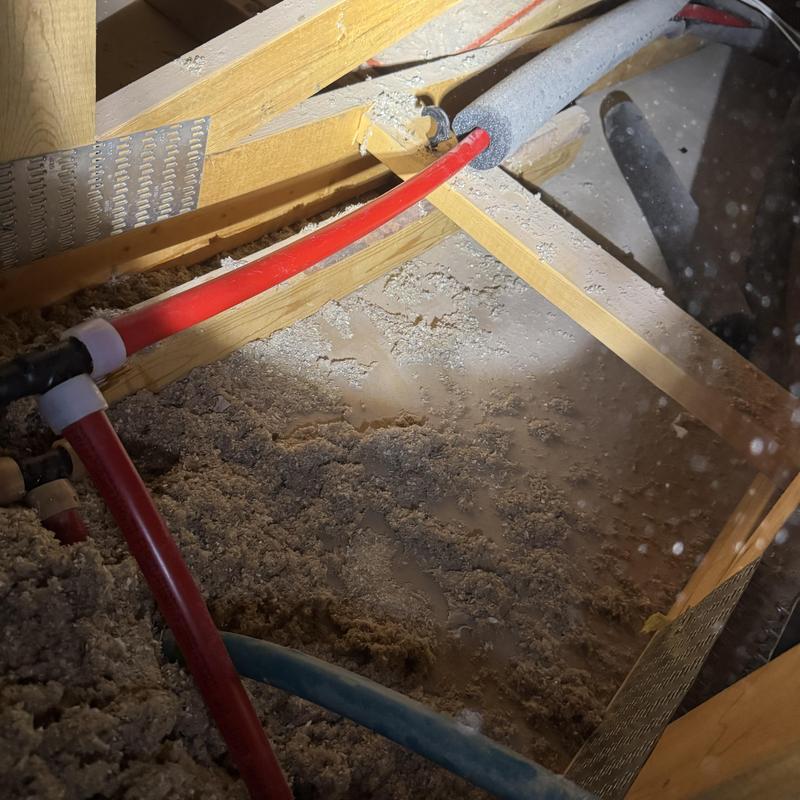A plumber in Litchfield Park, Arizona, inspected an attic to locate a pinhole leak in a waterline. The service involved leak detection within the ceiling area to address hidden water damage risks.