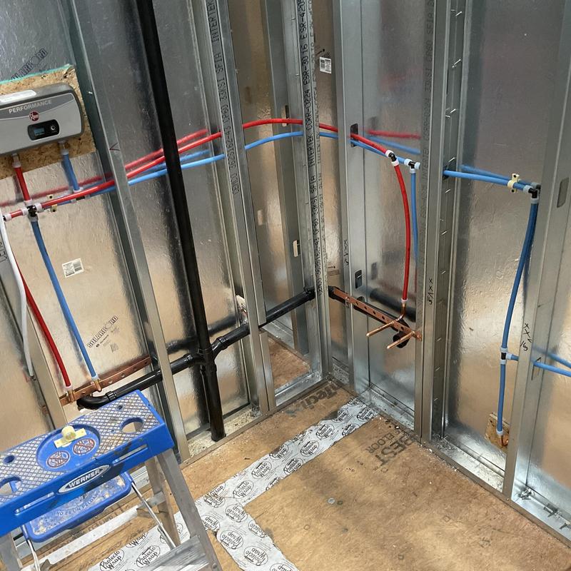 PHAY Plumbing Services LLC performed rough-in plumbing for a new build in Litchfield Park, Arizona. This phase included installing water supply and drain lines before wall finishes. The team ensured accurate pipe placement to support future fixture installation and system function.